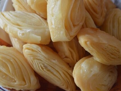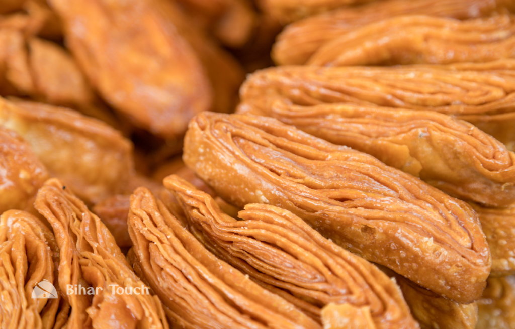 Thin, flaky layers of refined flour, sugar, and ghee — Khaja is a delicate sweet that has been a traveller’s favourite for centuries. The Silao variety holds a GI tag, making it one of Bihar’s most protected culinary exports.